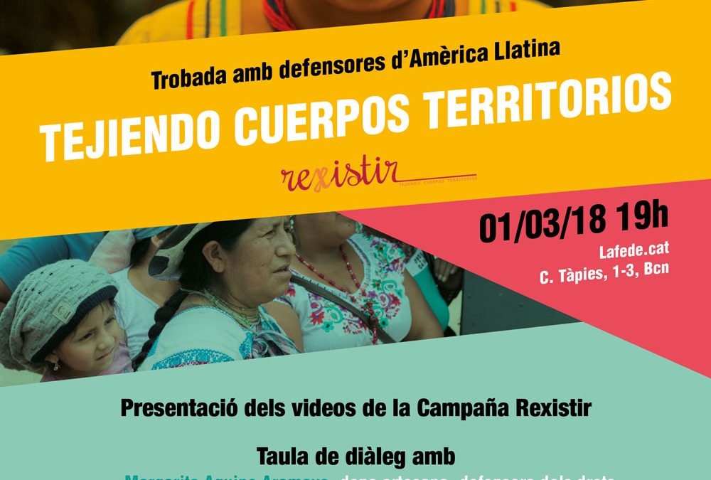 Trobada amb defensores d’Amèrica Llatina dins la campanya “Tejiendo Cuerpos Territorios” Dijous 1 de març (Activitat pre-volt) 19.00h Trobada amb defensores d’Amèrica Llatina dins la campanya “Tejiendo Cuerpos Territorios”, amb la participació de Margarita Aquino...