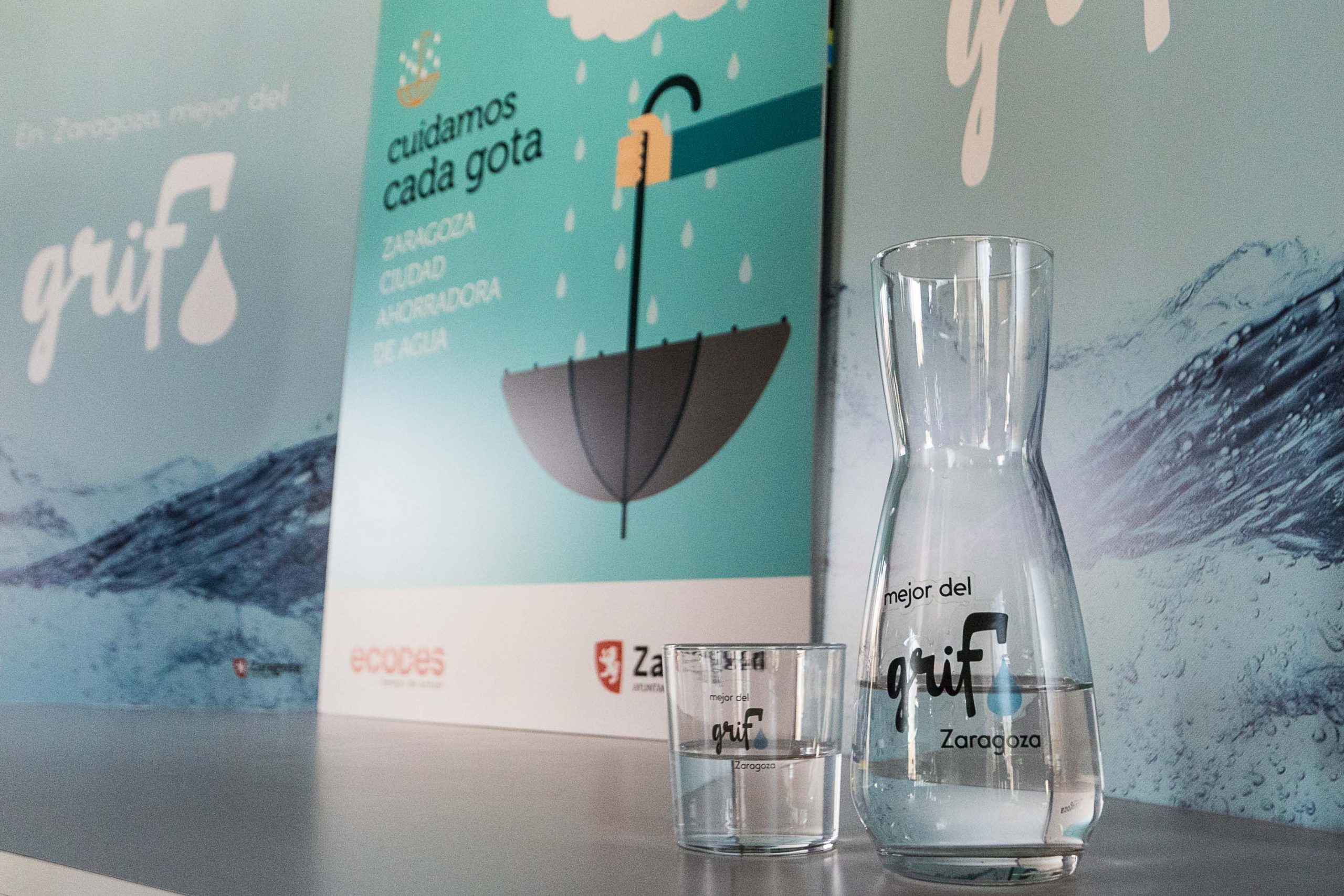 – Acción demostrativa en locales de hostelería: en colaboración con las asociaciones de hosteleros Cafés y Bares y Horeca se trabajará desde los propios restaurantes ofreciendo agua del grifo a sus clientes. Se les facilitará desde el Ayuntamiento decantadores en dos fases. En una primera, desde la semana que viene, se distribuirán los recipientes entre 25 locales de hostelería y restauración de la ciudad. Tras la resolución del concurso de desarrollo de la imagen, se editará una botella con la imagen icónica de Zaragoza y su defensa del medio ambiente.