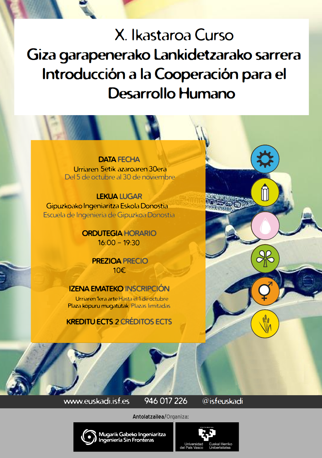 Esta edición se llevará a cabo desde el 5 de octubre al 30 de noviembre de 2018, durante las tardes de los viernes, en la Escuela de Ingeniería de Gipuzkoa.