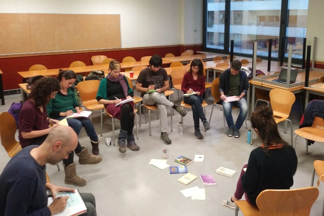 Con la facilitación de Beatriz Casado, comenzamos el taller revisando qué ejes de opresión podrían operar al interior del grupo que nos habíamos acercado a esta sesión. Desde la Educación Popular se nos invita a nombrar lo que suele quedar oculto. Revisamos si aspectos vinculados al sistema sexo/género, a la edad, a la realidad lingüística o nuestra experiencia acumulada podrían afectar a la dinámica del grupo o a cómo se produce la participación a lo largo de la sesión. Visibilizar los poderes, traerlos al plano de lo visible, para trabajar con ellos. Y así, empezamos a dar forma a esa idea de emancipación que trae la Educación Popular.