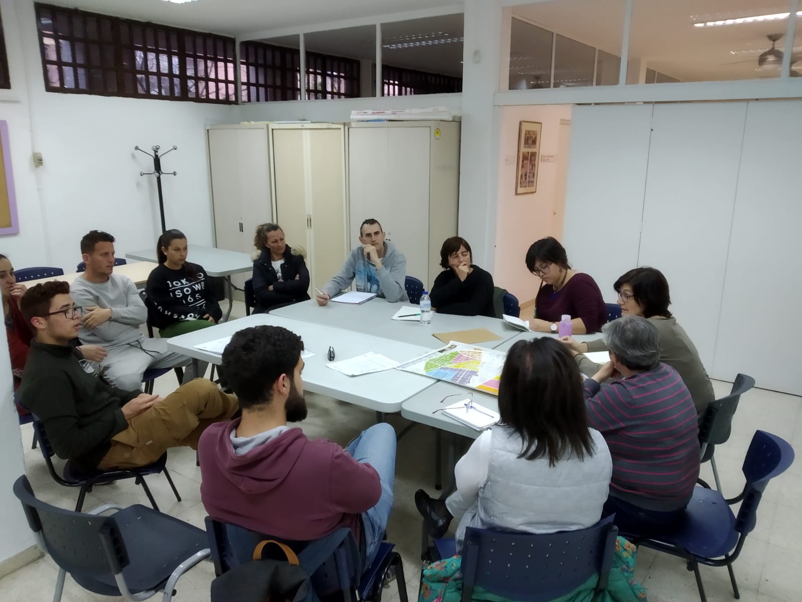 Foto portada: Reunión de vecinas y vecinos con interés en el huerto urbano con Amparo Pernichi. Fuente: ISF.