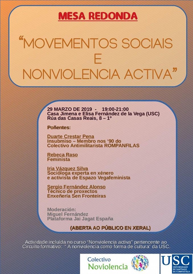 O pasado 29 de marzo participamos nunha mesa redonda sobre nonviolencia nos movementos sociais, dentro dun curso sobre Nonviolencia da Universidade de Santiago e o Colectivo Noviolencia.