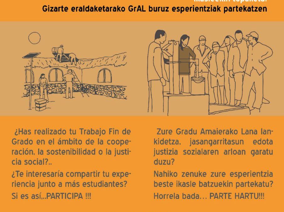 Zure Gradu Amaierako Lana lankidetza, jasangarritasun edota justizia sozialaren arloan garatu duzu? Nahiko zenuke zure esperientzia beste ikasle batzuekin partekatu? Horrela bada, Euskal Herriko Mugarik Gabeko Ingeniaritzatik zure interesekoa izan daitekeen proposamen...