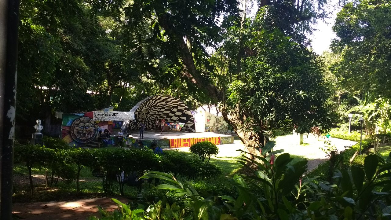 El Salvadorko Unibertsitatera (UES) egin genuen bisita pasa den uztailaren 25ean. Bere egin ninduten campusak dituen gune berdeak, ikasleek antolaketarako dituzten espazioak, hormen aldarrikapenak eta memoria… Elektrikako Fakultatera bidean 70ean El Salvadorko gobernuak hil zituen ikasleak omentzeko ekitaldia: dantza, diskurtso kritikoa, musika, ikasle mugimendu egituratua… Zetino Elektrika Fakultateko Energia Berriztagarrien zuzendariarekin bildu ginen ondoren, laborategi batean. Laborategian teknologia desberdineko bi plaka fotovoltaiko, alderanzgailu monofasiko eta trifasikoak eta mikroalderanzgailuak zeuden. Alderanzgailuetan ikusi ahal izan genuen fakultateko teilatuan zeuden plaka fotovoltaikoek sortutako potentzia; plaketako bat eguzkiarekiko oinarri higikorra zuen eta besteek finkoa. Hori dela eta, sorkuntza fotovoltaiko handiagoa erakusten zuen mugikorrak. Unibertsitateko ikasleek diseinatu zuten higikorra, eta azaldu zigun nola motorrak plakatik sortzen duen energiaren bidez birarazten duen plaka bera. Alderanzgailuei dagokienez, normalean, plaka-serie bakoitzko bat jartzen dela esan zigun, baina mikroalderanzgailuen kasuan, plaka bakoitzeko bat jarri behar dela. Amaitzeko, laborategian zeuden plakak aztertu genituen eta konexioak fisikoki egiten ikasi. Bat silizio polikristalinozkoa zen eta bestea hainbat materialen arteko nahasketa.