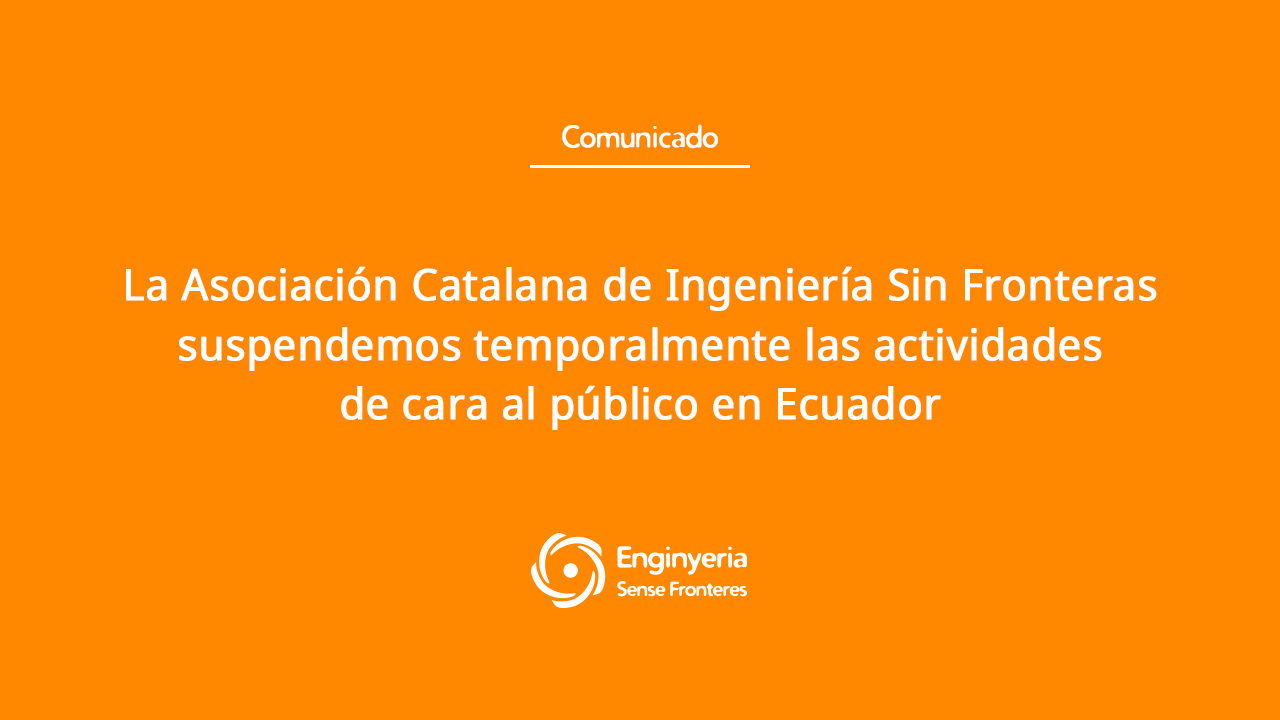 La Asociación Catalana de Ingeniería Sin Fronteras suspendemos temporalmente las actividades de cara al público en Ecuador