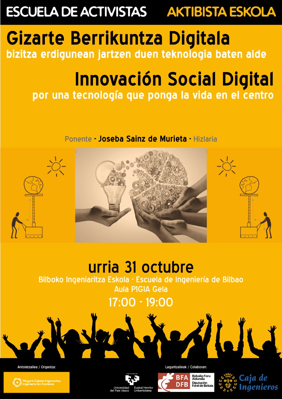Gizarte Berrikuntza Digitalaren baloreetan sakontzeko eta gizarte eraldaketarako apustuan dabiltzan esperientzia ezberdinak ezagutzeko Joseba Sainz de Murieta (ISF-MGIko kidea) izango dugu hizlari. Taldean hausnartzeko eta Gizarte Berrikuntza Digitalaren oinarriak dituzten ekimen hauen mapatzera hurbiltzeko, datorren urriaren 31n, ostegunean, izango dugun saiora gonbidatzen zaituztegu.