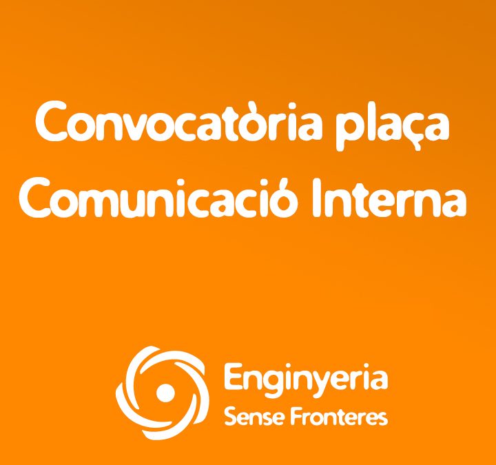 Convocatòria plaça Comunicació Interna Busquem una persona per incorporar-se de forma temporal a l’equip d’Enginyeria sense Fronteres amb l’objectiu de donar suport a l’Àrea de Comunicació de l’entitat. Si tens formació universitària en...