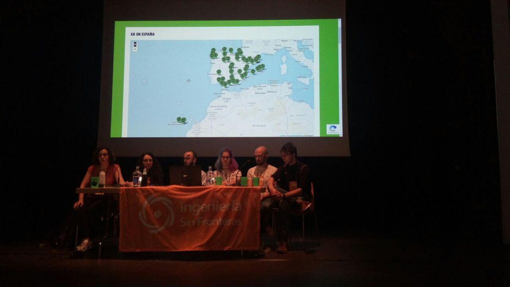 Por la tarde, vuelta a las actividades abiertas. Comenzamos con una mesa redonda con ISF y Extinction Rebellion España, que es parte y se coordina con la rebelión internacional noviolenta contra la extinción de especies y las crisis ecológica y existencial conocida como Extintion Rebelion (XR). Estuvieron Diego y Alba, de XR Salamanca, junto a Miguel y Asun, de XR Valladolid. Además, se les sumaron dos personas ISF: Sergio, en modo dual, pues participa de ESF Illes Balears y XR Palma, y Beatriz, de ESF Catalunya e ISF Andalucía. Tuvimos la oportunidad de conocer como se organiza XR, utilizando la Acción Directa No Violenta (ADNV) para exigir a los gobiernos que escuchen a los agentes sociales que llevamos años trabajando y advirtiendo de esta crisis climática.
