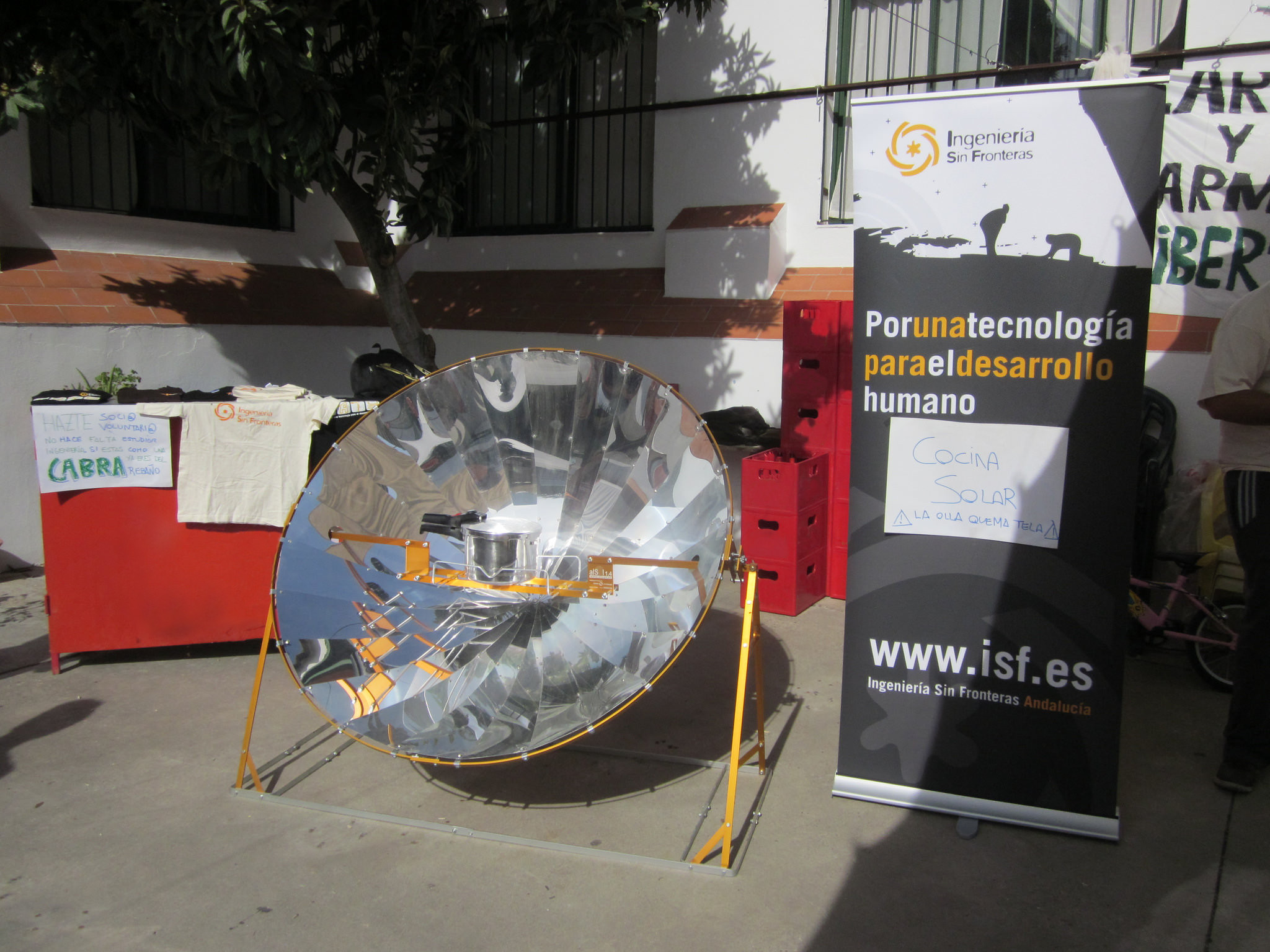 Por deformación profesional, estimo que aplicando la termodinámica a la imagen que acompaña este artículo, la olla a presión de la cocina solar está al revés, esto es, la tecnológica gran cazuela debiera ser de color negro (pintada o tiznada), mientras que el mango se protegería de la radiación envolviéndolo en brillante papel de aluminio o similar.