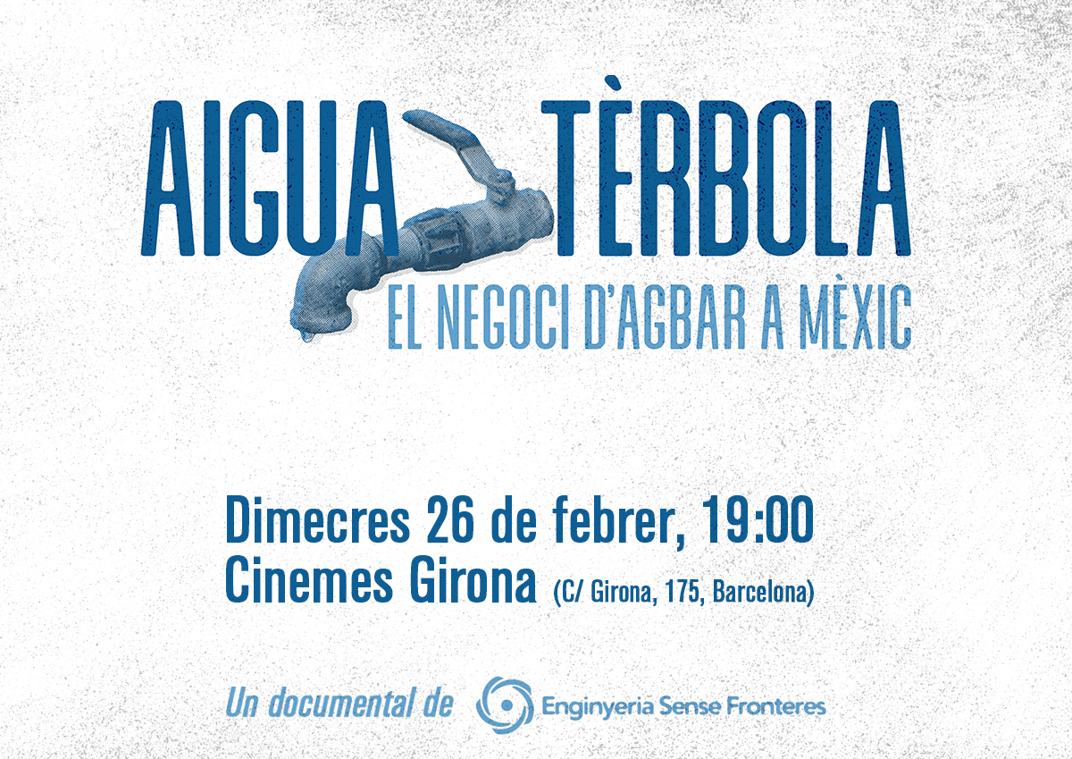 Dimecres 26 de febrer a les 19:00 als cinemes Girona, presentem el documental “Aigua tèrbola, el negoci d’Agbar a Mèxic”, produït per Enginyeria Sense Fronteres en el marc del projecte “El negoci de l’aigua: la gestió d’un dret humà”, finançat per la beca DevReporter.