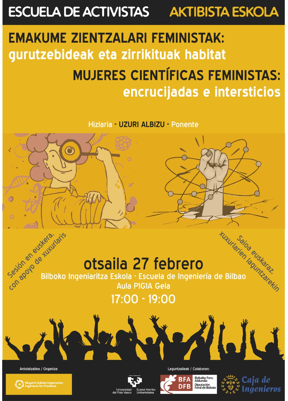 Zientzia eta generoa konstruktu sozialtzat hartzeaz haratago, bi sistemak elkar eraikitzaileak dira. Genero-sistemak egien ekoizpena baldintzatzen duen moduan, zientzia-sistema modernoak gizon eta emakumeen identitateen ekoizpenean eragiten du. Bi sistemen artean eratzen diren erlazioetan sakontzeko, hurrengo Aktibista Eskolan genero sistemak mundu zientifikoetan hartzen duen itxurari buruz hausnartuko dugu, zientzia ekoiztean zein irakastean. Horretarako, Uzuri Albizu, ikerlari feminista eta matematika irakaslea Hezkuntza Fakultatean, izango dugu gurekin.