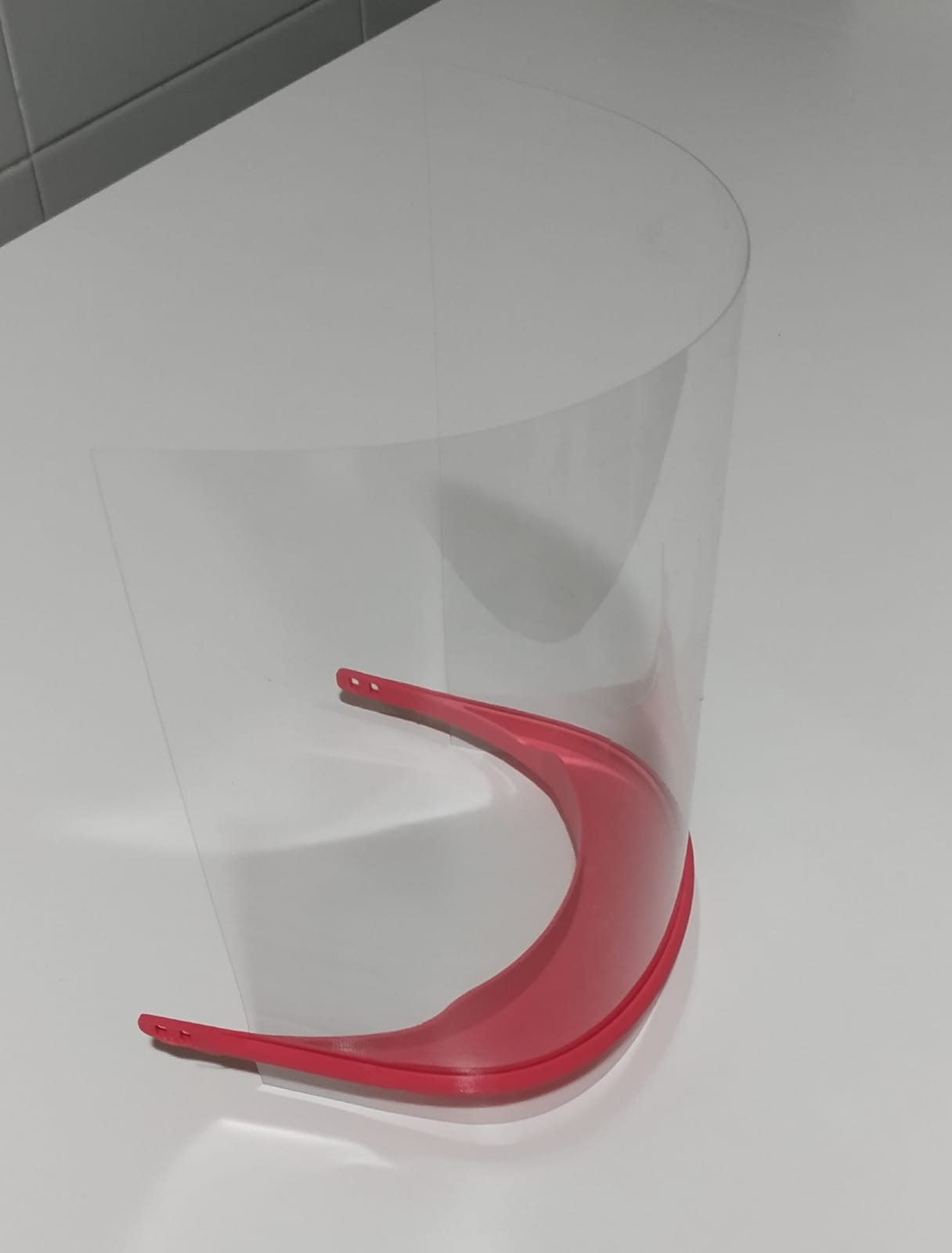 En concreto, se trata de una visera fabricada mediante impresión 3D, que se coloca en la frente y a la que se fija por debajo un acetato transparente tamaño A4, de los que se usan para encuadernar o similar, y que se sujeta detrás con una cinta de goma o de plástico impreso.