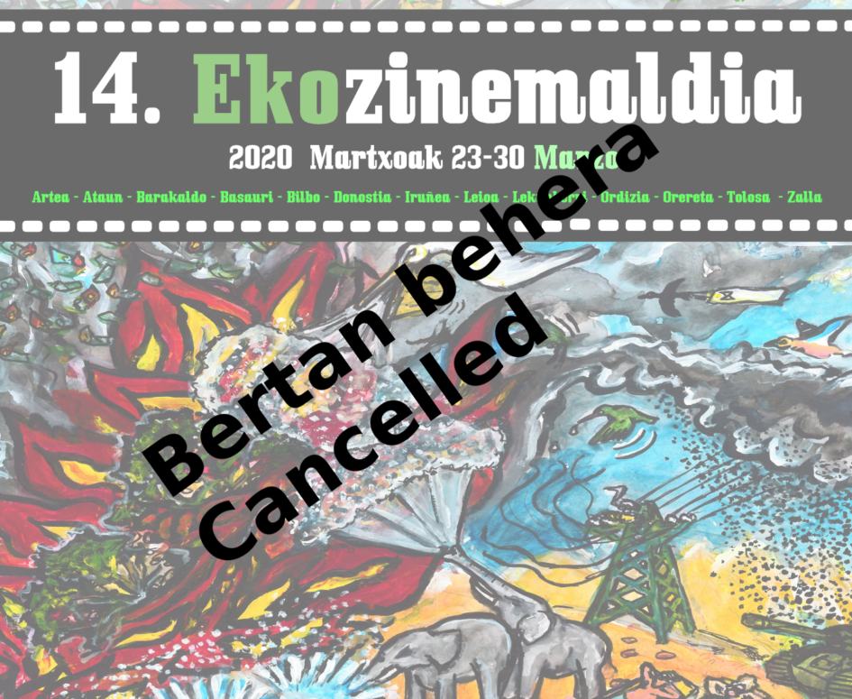 Por causa de las medidas adoptadas para frenar el coronavirus 2019 (COVID-19) y la responsabilidad social que asumimos, nos vemos obligadas a cancelar el Ekozinemaldia programado en todos los pueblos y ciudades de Euskal Herria. Todavía es prematuro para decidir si lo organizaremos de nuevo, ni cuándo. Por de pronto, hacemos asequibles esas películas y recursos para que durante este tiempo de confinamiento podamos seguir conociendo esas experiencias, esos esfuerzos para resistir los efectos de un modelo energético depredador y destructivo, y transiciones energéticas reales y justas en otros lugares.
