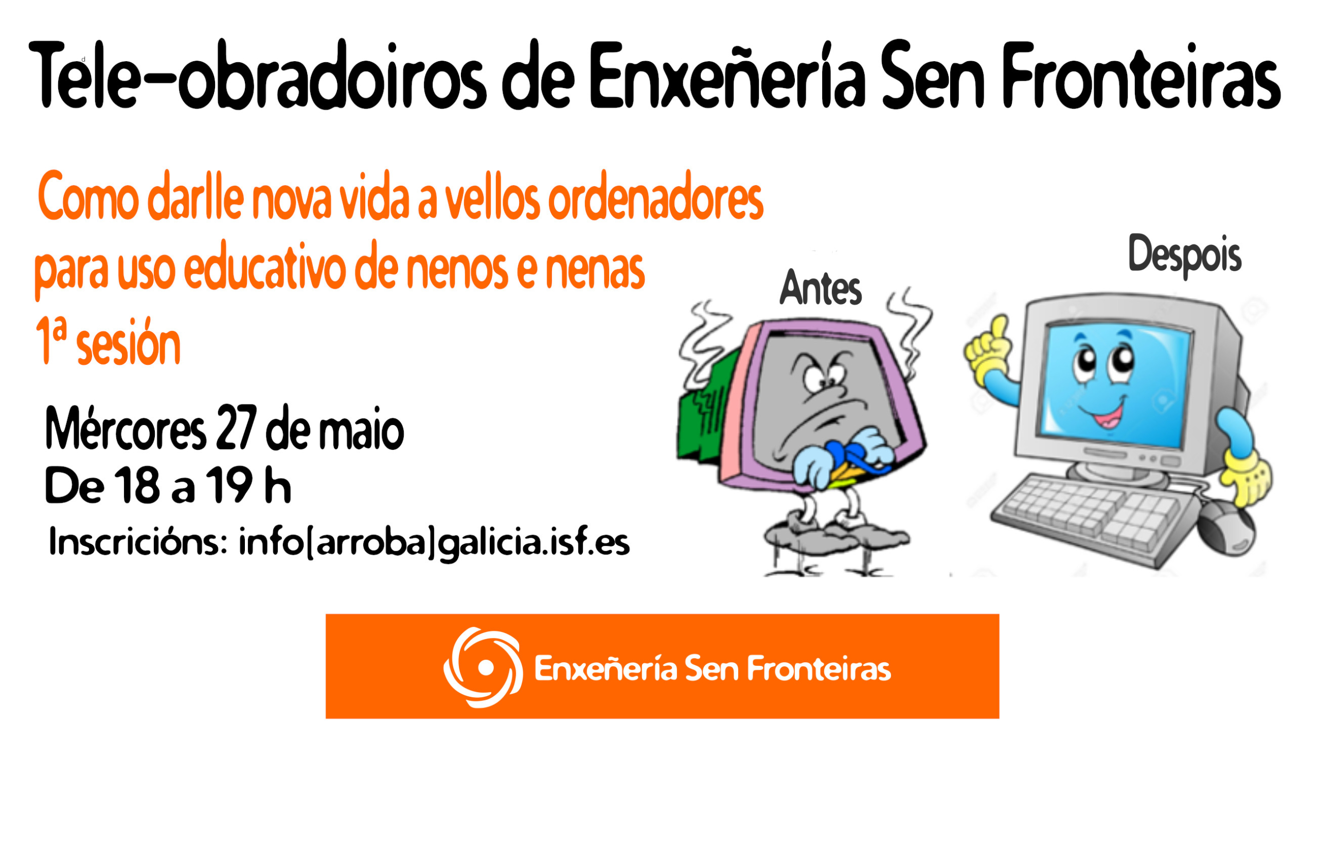 O vindeiro mércores 27 de 18 a 19 h teremos un pequeno obradoiro de iniciación sobre Recuperación de vellos ordenadores para uso educativo de nenos e nenas que, nesta situación de alarma, teñen que seguir as aulas a distancia.
