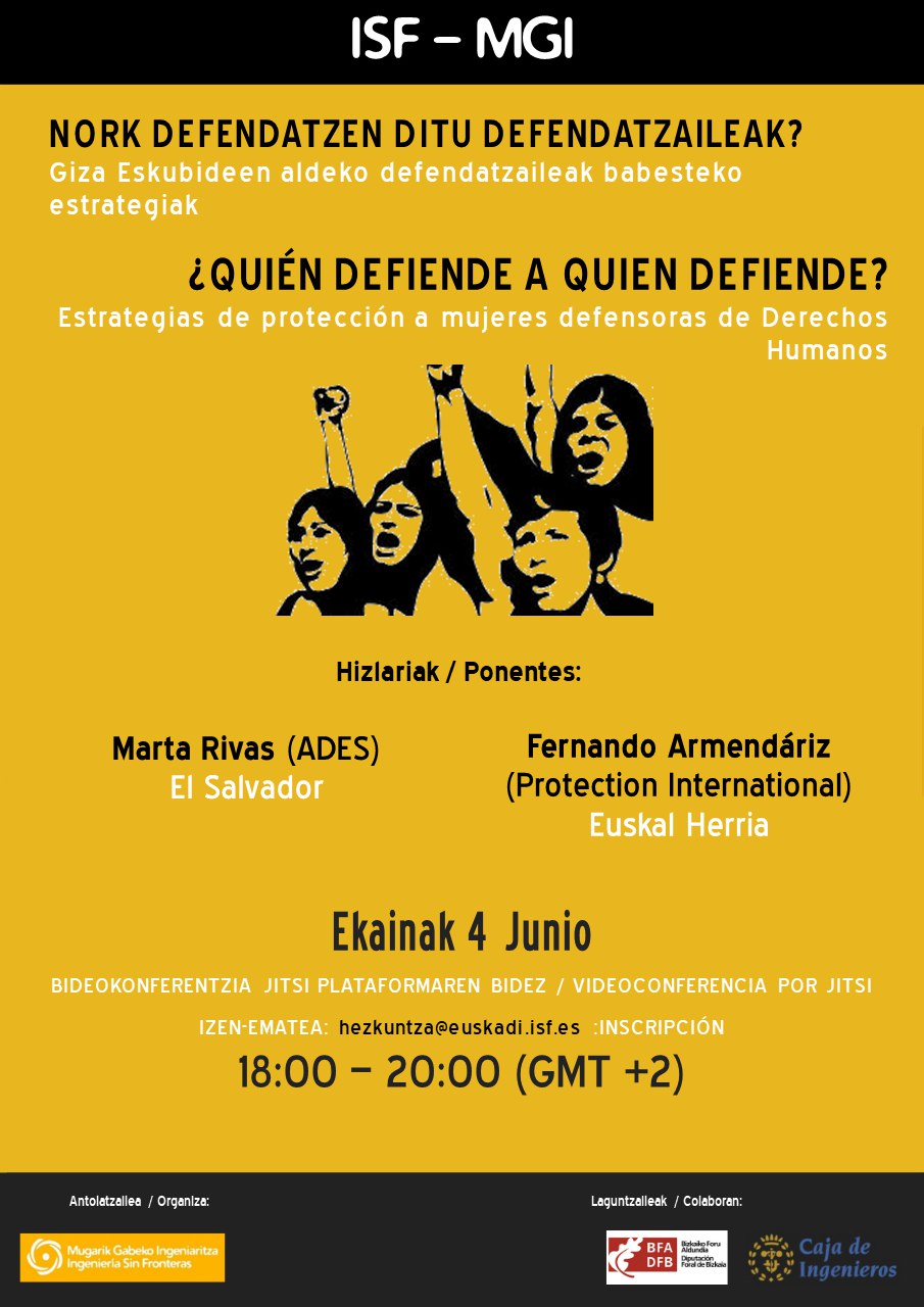 Gai horiei erantzuna emateko, mahai-inguru birtual bat antolatu dugu, Marta Ribas El Salvadorreko giza eskubideen defendatzailea eta Fernando Armendariz Protection Internationaleko giza eskubideen ekintzailea bertan izango direla.