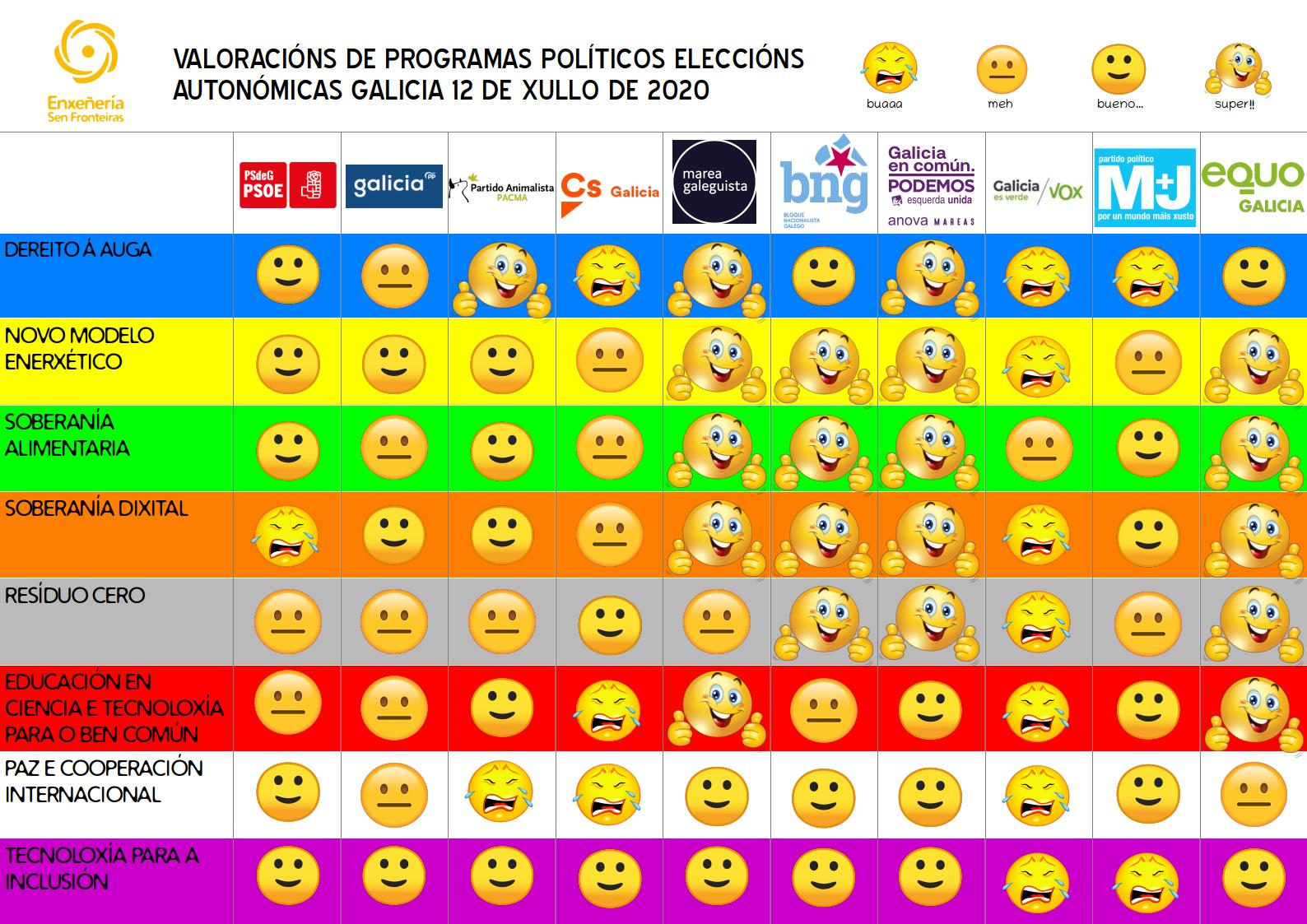 Agora deixamos as análises que fixemos dos programas de 10 partidos dos que concorren a estas eleccións, e un cadro resumo comparativo. Esperemos sexa útil tanto ás persoas electoras como aos propios partidos políticos.