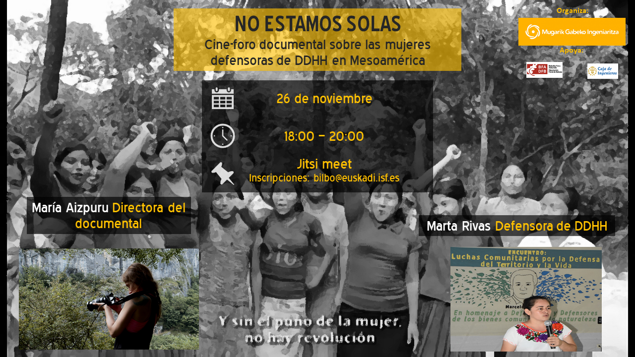 La entrada No ESTAMOS SOLAS. Cine-foro documental sobre las mujeres defensonas de derechos humanos en Mesoamérica. aparece primero en ISF Euskadi.