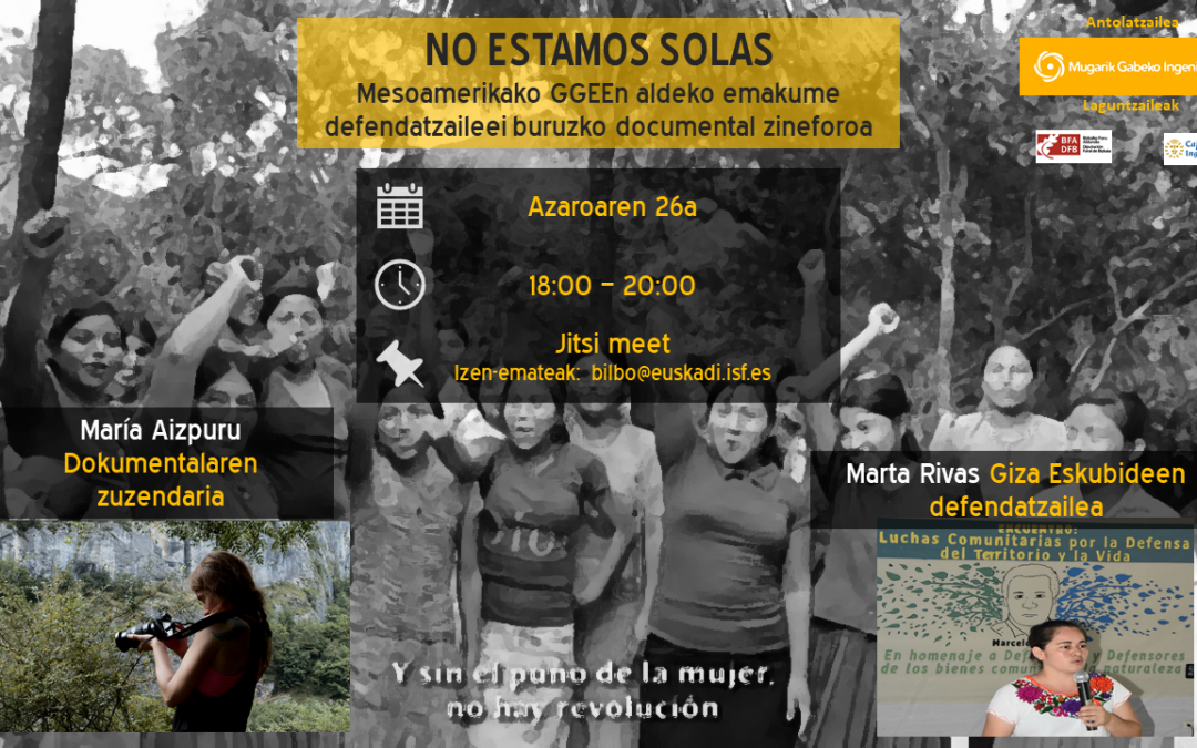 NO ESTAMOS SOLAS. Giza eskubideen defendatzaile diren Erdialdeko Amerikako emakumeei buruzko zine-foro dokumentala.