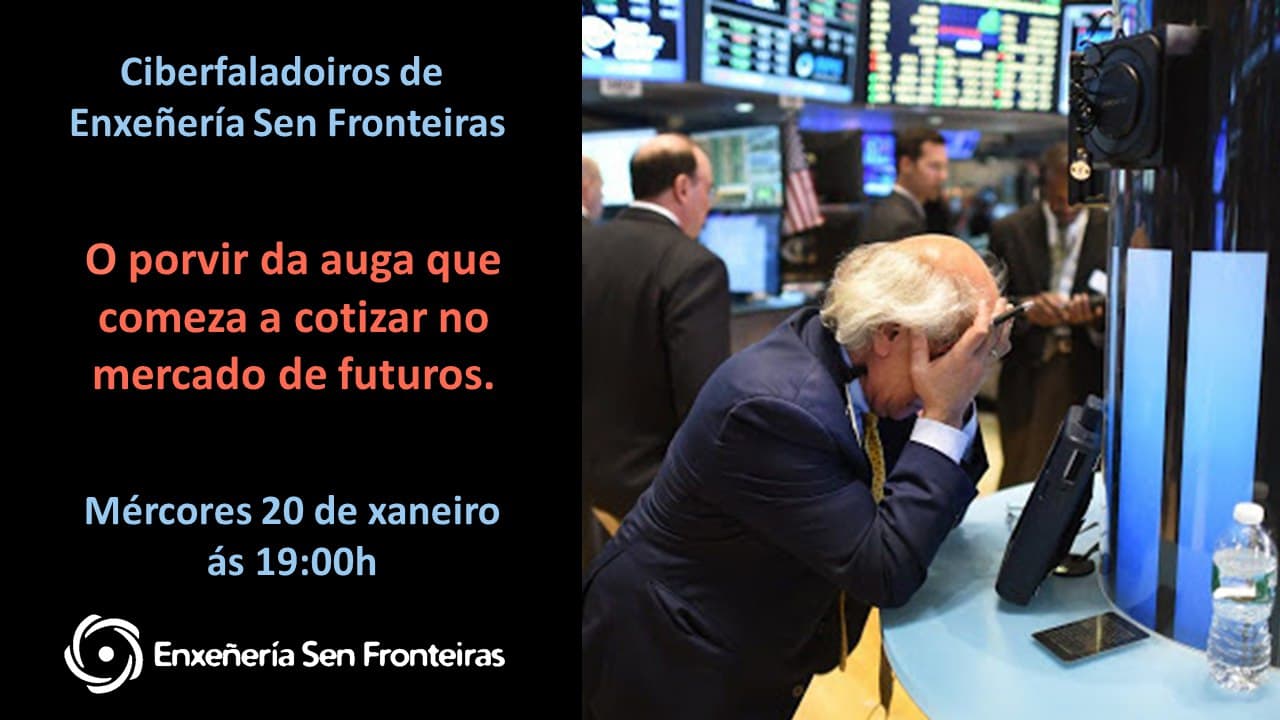 - Desde Enxeñería Sen Fronteiras Galicia, non vemos en absoluto clara esa presumible estabilización de prezos da auga que prevé quen defende a cotización no mercado de futuros, e si vemos perigos manifestos, dos que xa hai exemplos abondo nos mercados de alimentos básicos, porque estimamos un grave risco de afastamento da toma de decisións sobre un ben básico da maior parte das persoas do planeta, que teñen moitas posibilidades de quedar á mercede dos movementos especulativos globais que escapan a comprensión do groso da sociedade.