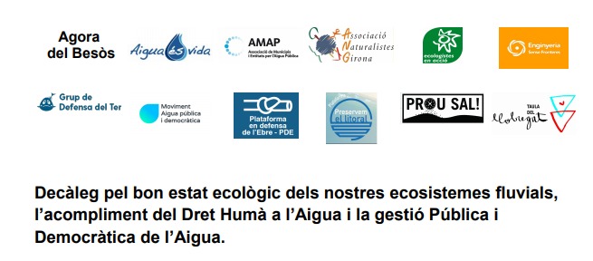 • Entitats ecologistes i en defensa de l’aigua presenten un decàleg pel bon estat ecològic dels nostres ecosistemes fluvials, l’acompliment del Dret Humà a l’Aigua i la gestió Pública i Democràtica de l’Aigua.
