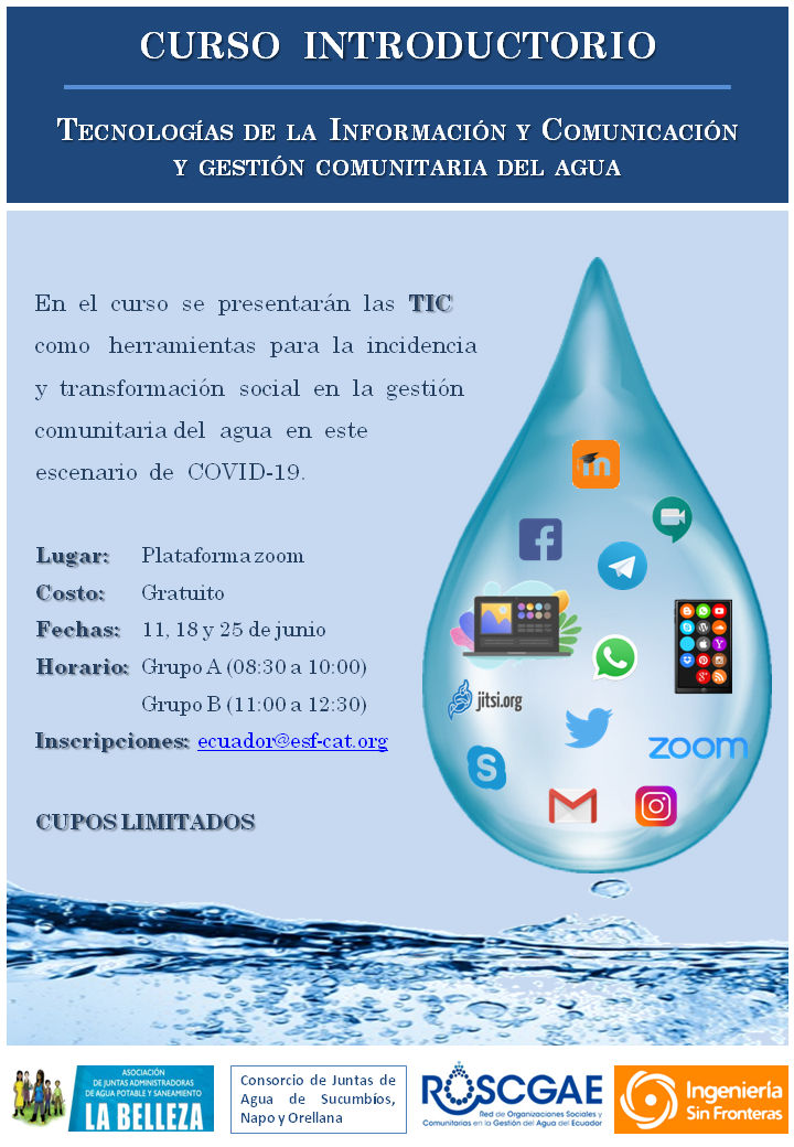 L’entrada CURSO INTRODUCTORIO Tecnologías de la Información y Comunicación y Gestión Comunitaria del agua ha aparegut primer a ESF.