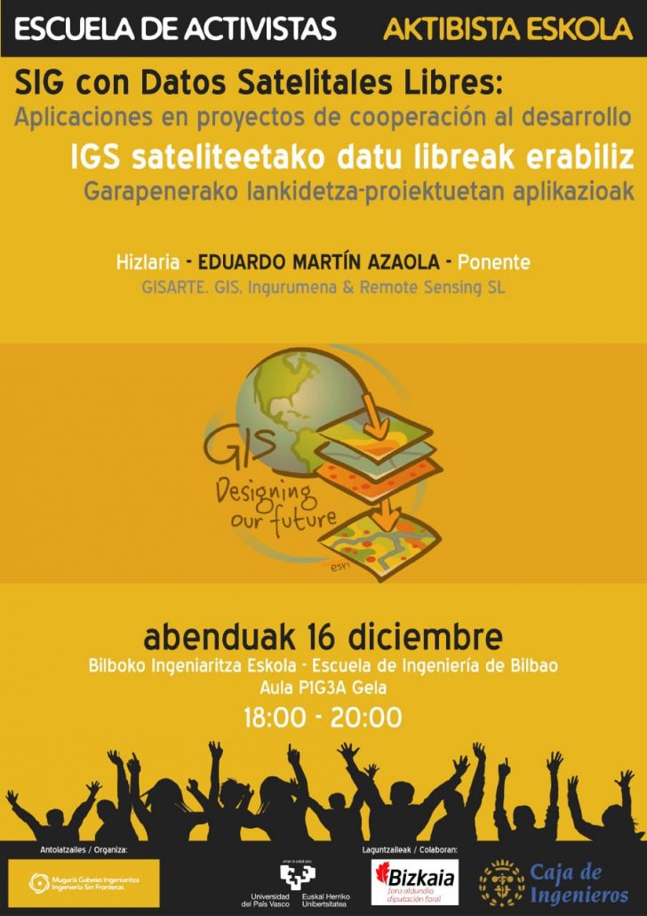 Aktibisten Eskolako hurrengo saioan Eduardo Martín Azaola izango dugu gurekin, ingurumen eta lankidetza proiektuetan eskarmentu handia duen nekazaritza ingeniaria. Harekin batera, satelite datu libre horiek nola eskuratu eta erabili aztertuko dugu, parte hartu duen proiektu batzuen errepasoa eginez. Zure lekua gordetzeko (aforo mugatua egongo da) eta saioari buruzko jarraibideak jasotzeko, hezkuntza (arroba) euskadi.isf.es helbidera idatzi.