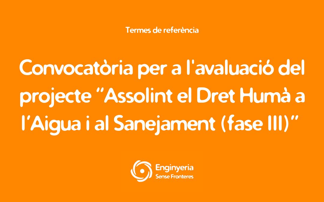 Termes de Referència (TdR) avaluació del projecte “Assolint el Dret Humà a l’Aigua i al Sanejament (fase III)”