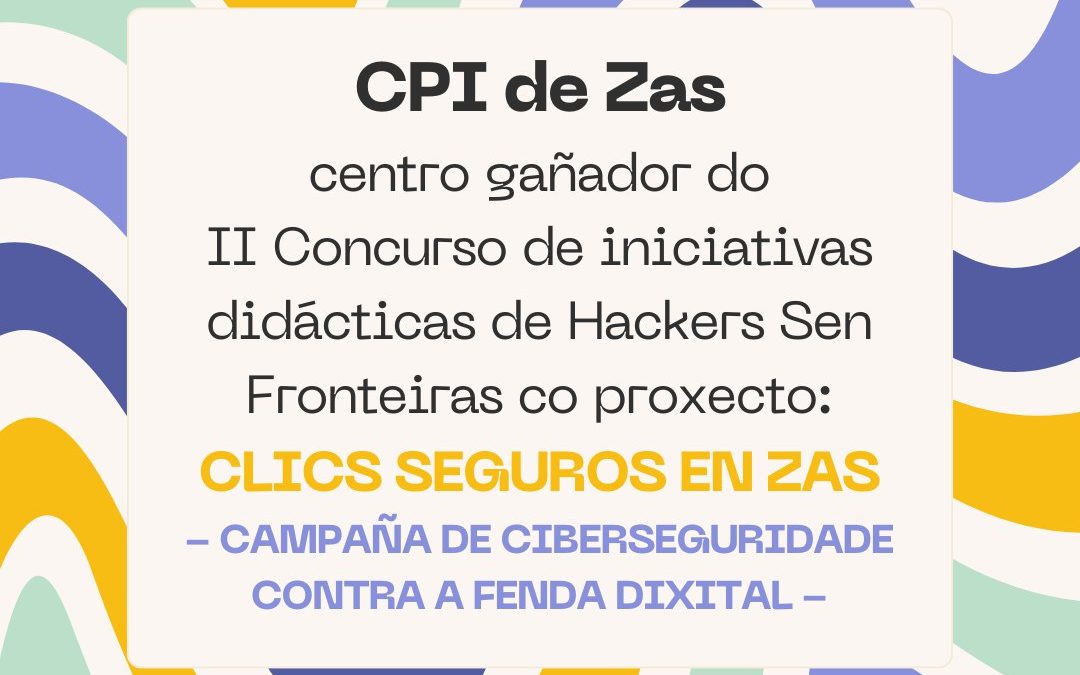 O Centro Público Integrado de Zas acadou o premio coa súa proposta de proxecto Clics seguros en Zas. O obxectivo desta iniciativa, é a de sensibilizar ao alumnado sobre os riscos e ameazas existentes na rede e nos dispositivos dende os que acceden á ela, así como das...