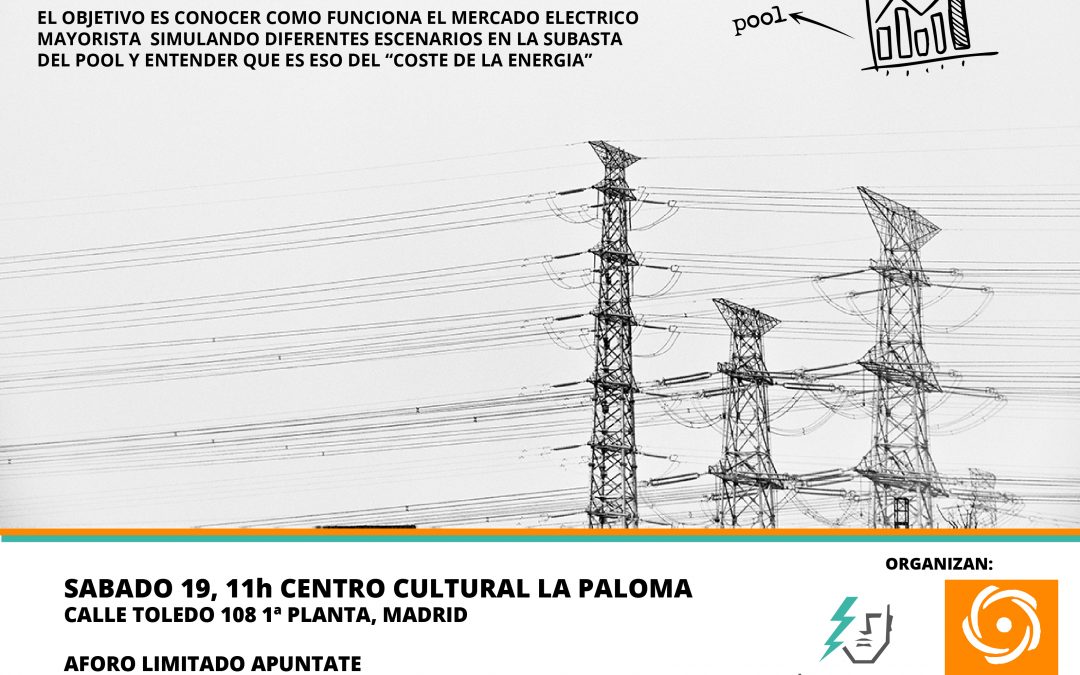 El próximo sábado 19, a las 11 de la mañana, vamos a organizar junto con La Corriente una dinámica de formación sobre el mercado eléctrico en el Centro Cultural La Paloma, en la calle Toledo 108. Seguro que alguna vez te has fijado que en tu factura aparece un quesito...