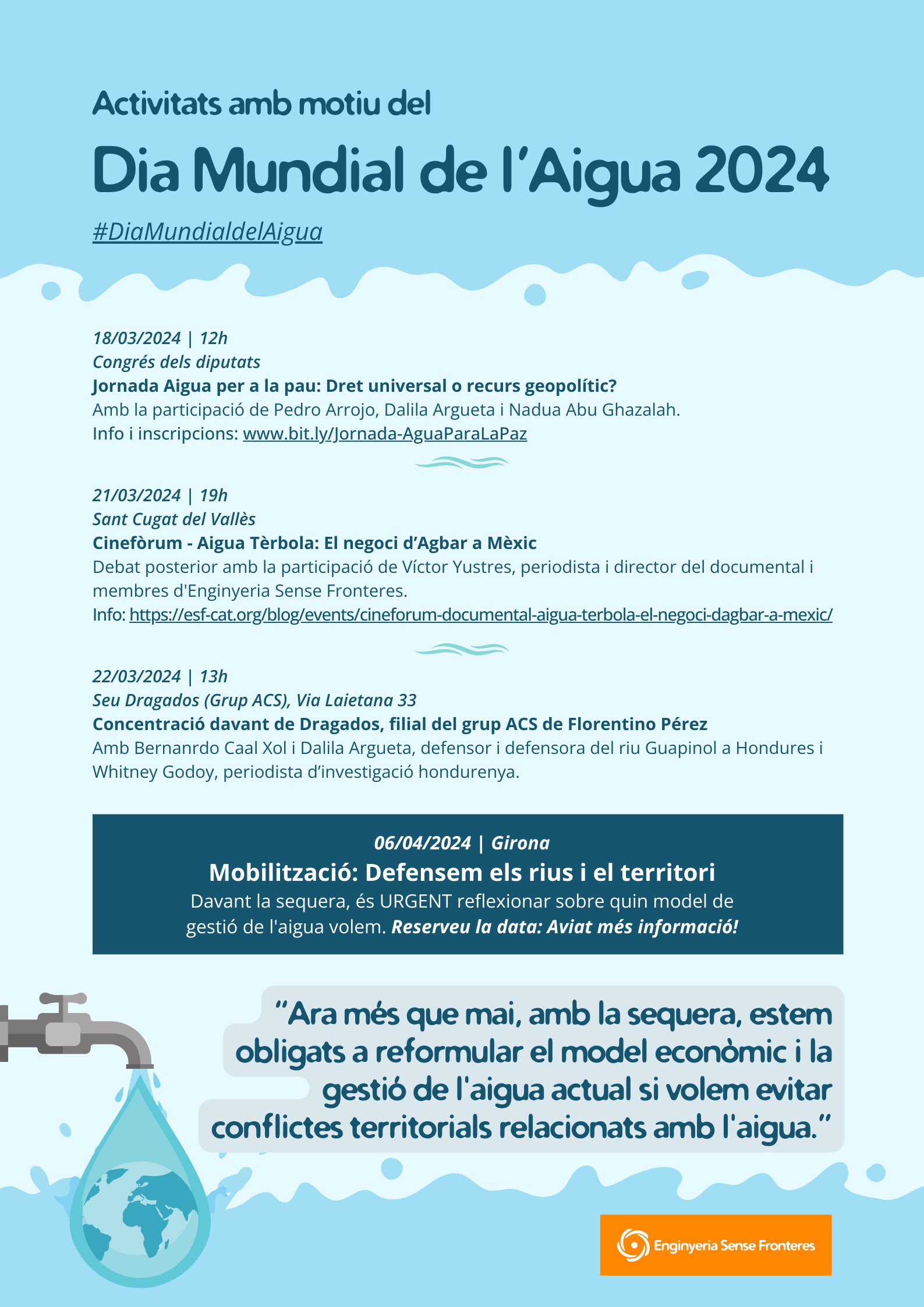 Dia Mundial de l’Aigua 2024 “Ara més que mai, amb la sequera, estem