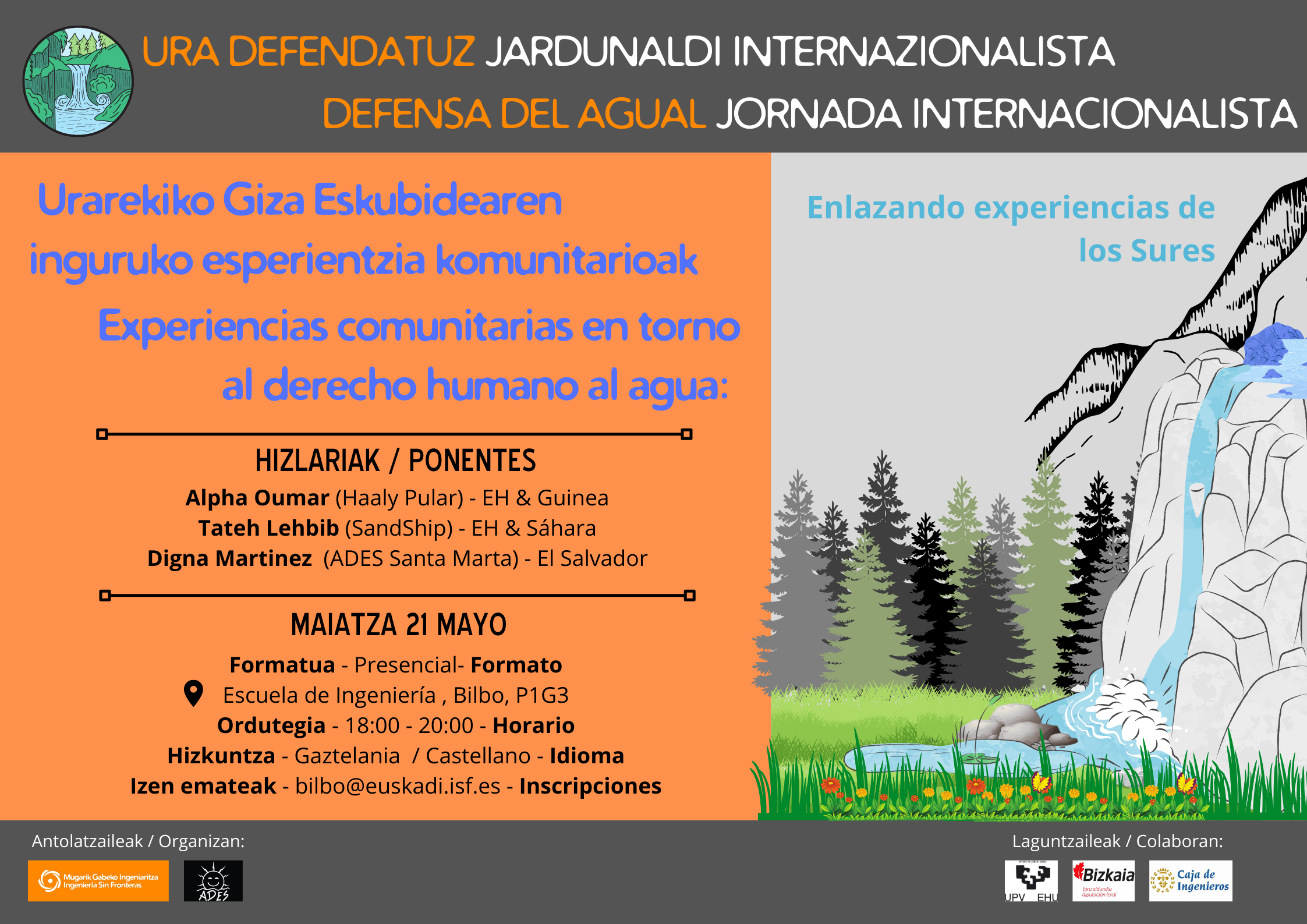 La entrada [Jornada] Experiencias comunitarias en torno al derecho humano al agua aparece primero en Ingeniería Sin Fronteras Euskadi – ISF Euskadi.