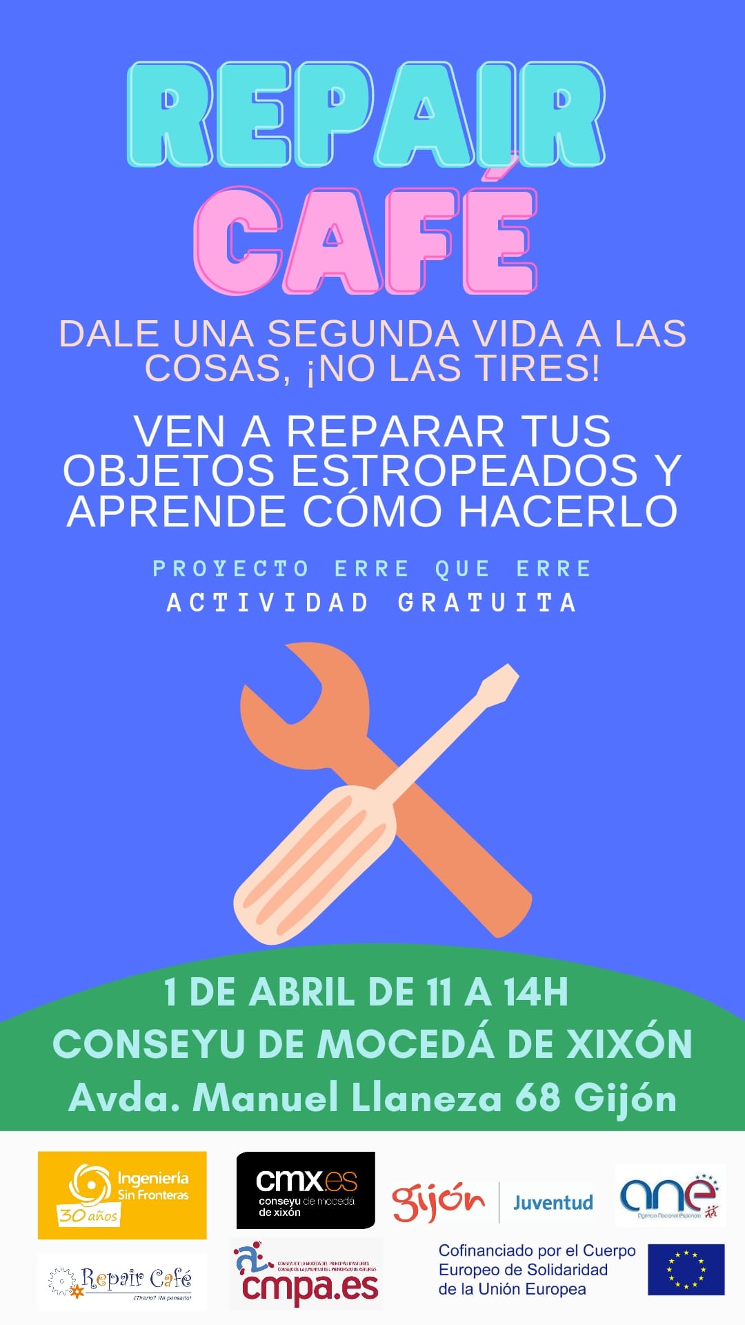 Estamos de vuelta!!! El sábado 1 de abril (de 11 a 14h) seguimos con nuestra lucha constante contra la obsolescencia programada, armadas con nuestros alicates, tornillos y ganas de aprender a reparar. Trae al Conseyu de la Mocedá de Xixón (CMX) esos cacharros que ibas a tirar para comprarte otros nuevos o esa ropa que
