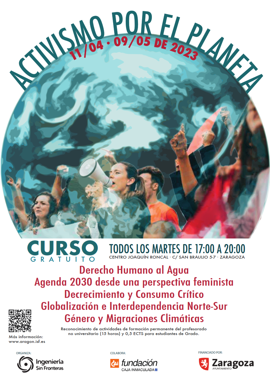 Ingeniería Sin Fronteras Aragón con la financiación del Ayuntamiento de Zaragoza organiza el curso “Activismo por el Planeta” en el Centro Joaquín Roncal de Zaragoza Esta planteado de forma teórico-practica […]