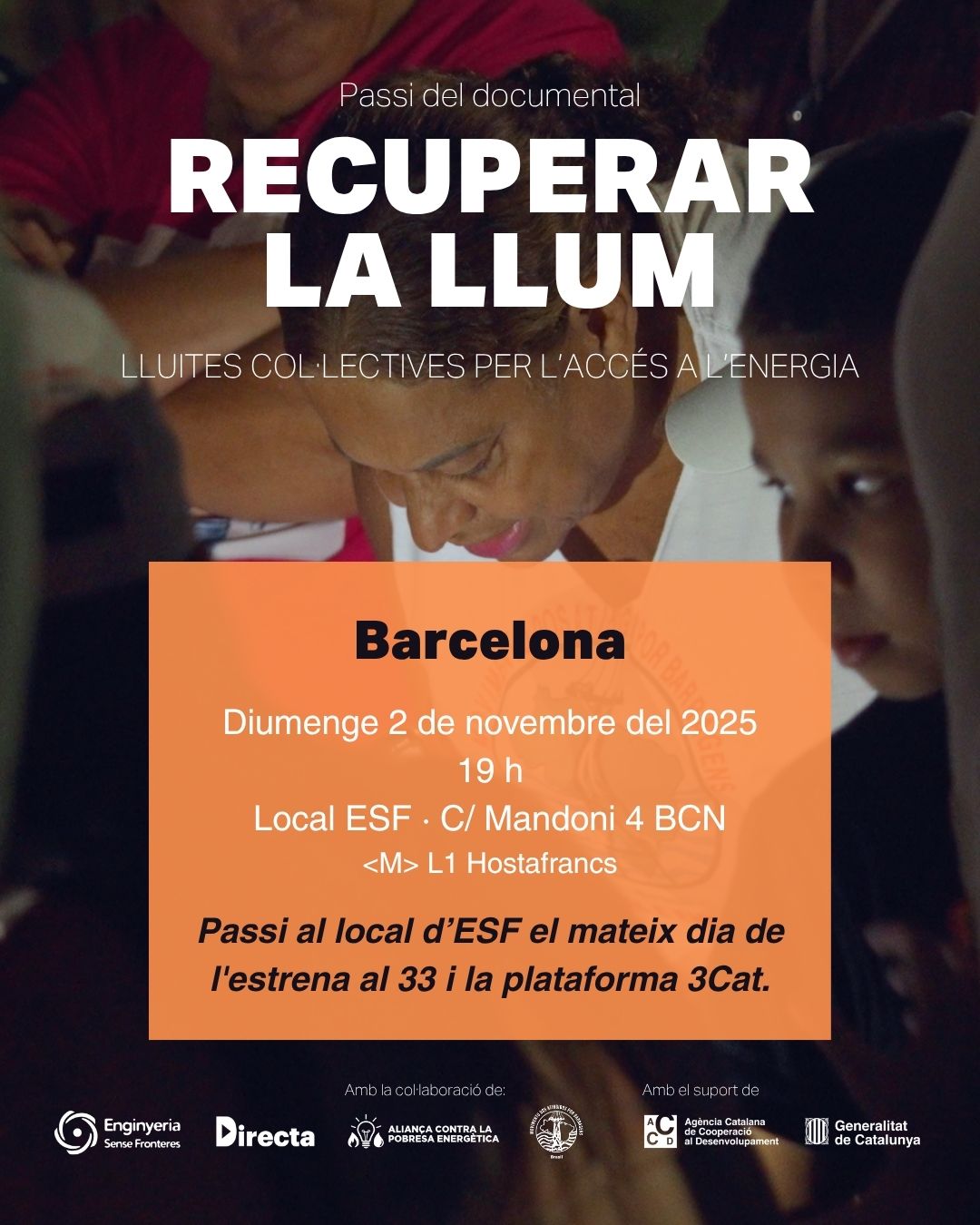 Vine a veure i compartir amb nosaltres, al nostre local, l’estrena del documental L'entrada Estrena documental “Recuperar la llum” ha aparegut primer a ESF.